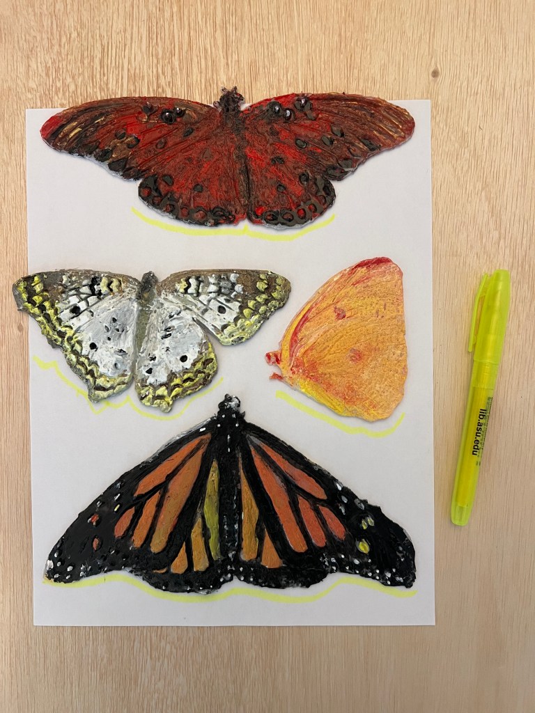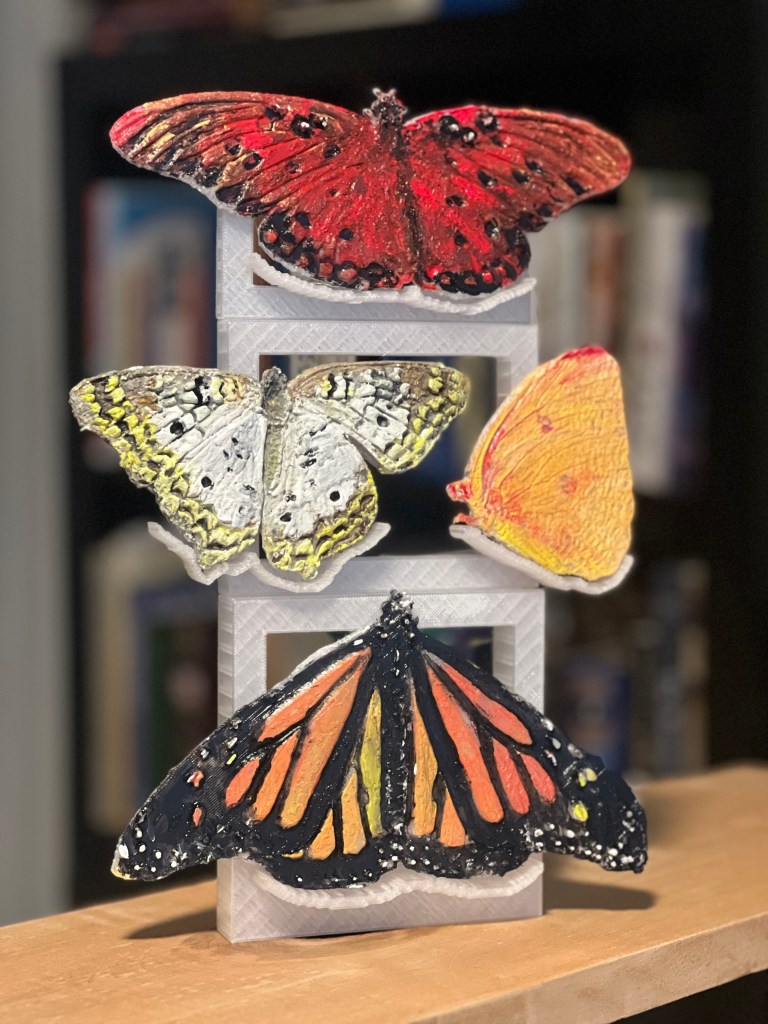 Last week, the Butterfly Pavilion at the Desert Botanical Garden opened for this years cool(er) season in Phoenix. I attended on the second day and took many photos. Since I have been on a renewed printer kick lately I processed the photos into geometry and printed them out, to finish with hand painting. I will not bore you with the process but I learned a lot about structure of color and ultra light structure of insect wing anatomy. Here are the first three: