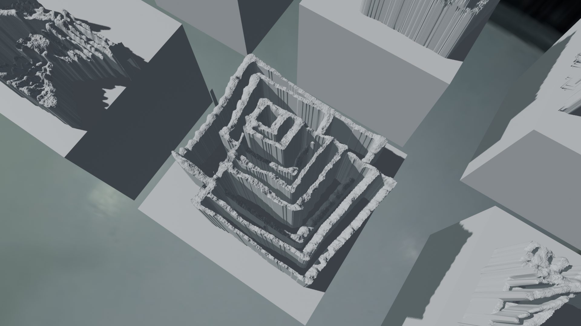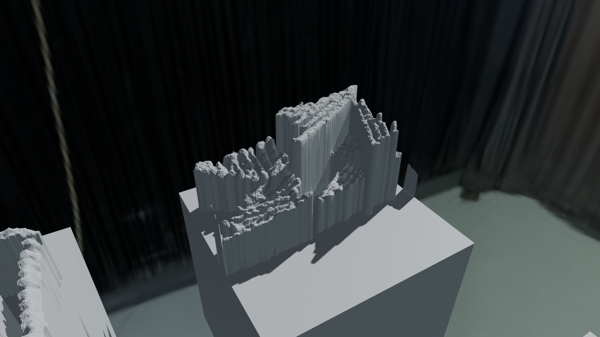 That May, and for the few years after, I was testing several approaches to my doctorate. And testing a few and fulfilling other lines of inquiry. Would I work on some kind of building science? Visual analysis? Interviewing, surveying, and polling? I settled on a historical-philological path and tread as lightly as possible. One incomplete line of inquiry was a project I called “Depth Maps” that were intended to generate depth from abstract two dimensional works. I used three of Popova’s Architectonics and ran them through some software to generate as such. The basic principal is seeing in grayscale and mapping by tonal range, assign minimum to white and maximum depth to black (or vice versa) and plotting all points of gray in between.