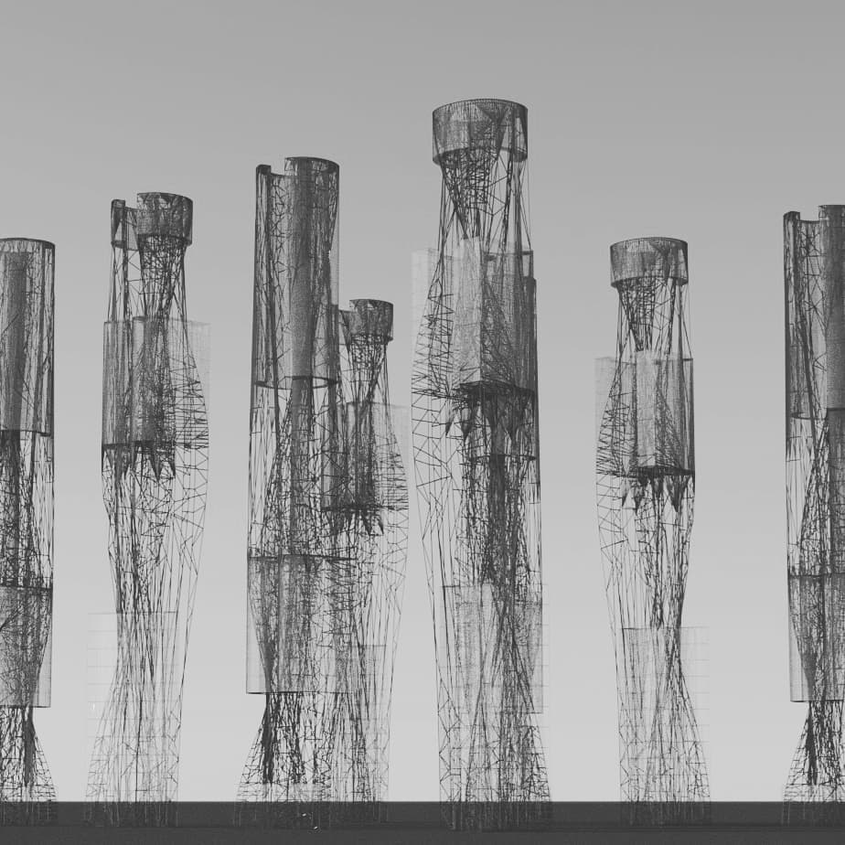 Two main findings: 1) a motif I have explored before–mitochondrial edges to maximize surface-only with those arranged internally to avoid direct light and heat gain. 2) egg-like structures with a hardened shell, and open to light, views, and outside space on the inside.