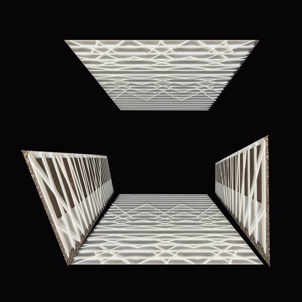 I anticipate the full size of these to be printed either in an on site printer or in an offsite printer. The model looks a little more like light frame spacing intervals, it might be spread out to take advantage of concrete span potential. Or it might stay at the compact spacing for extra strength.
