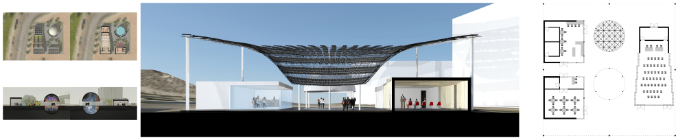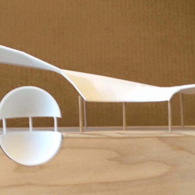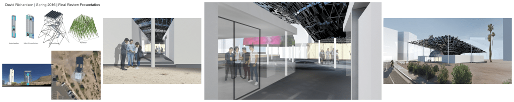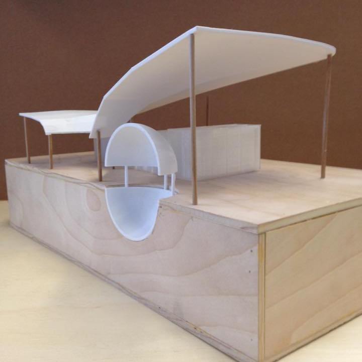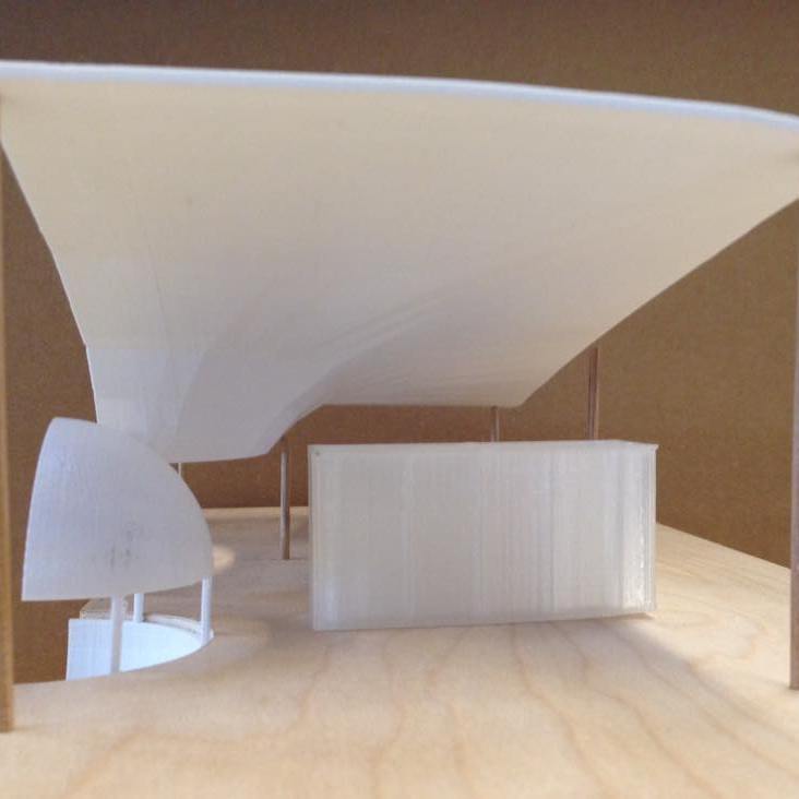 This was a challenging studio topic of a student center at ASU. I designed a sustainability pavilion, a spherical exhibition room, a telescoping lecture hall and a solar array on a tensile structure all to showcase innovation, a central factor at the university. This was the first project for which I 3D printed a study model.
