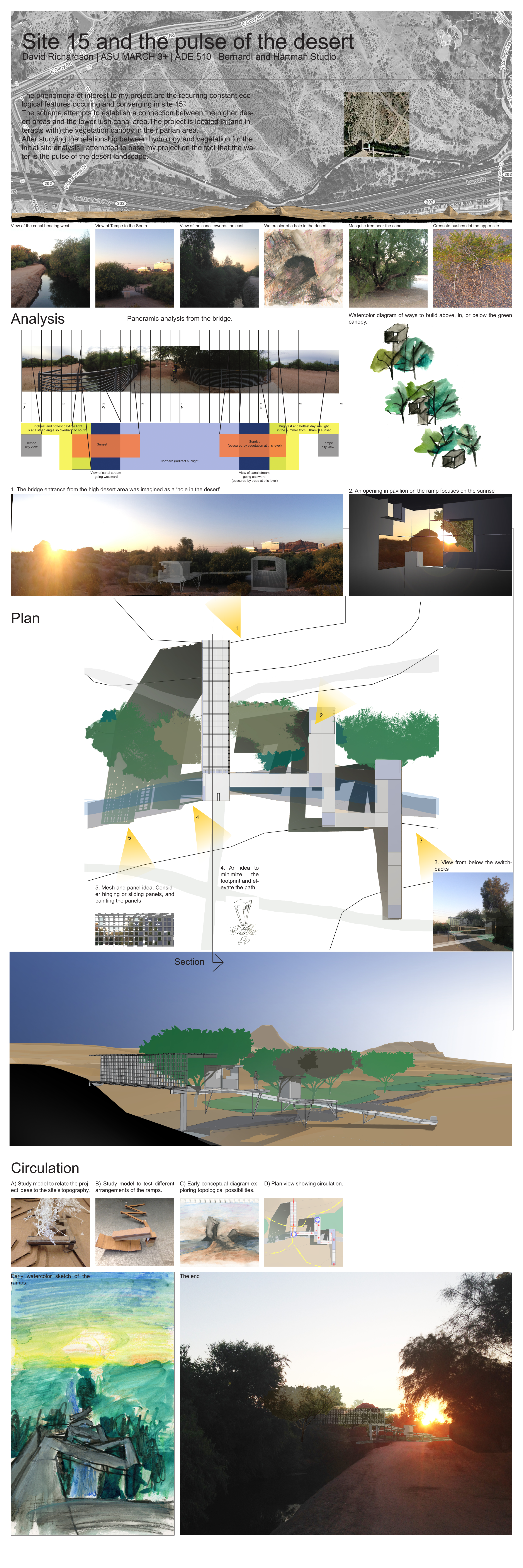 These are my first design projects when I moved to Arizona for graduate school. I had visited family in Phoenix and Tucson but had not worked on design. The projects were experiments in sustainability, and efforts at understanding the Sonoran desert and the exciting cultures in Arizona. Here are two alternate drafts for the final boards at my first AZ studio.